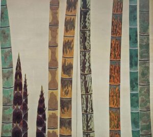 中期平八郎が残したたくさんの写生帖を見ていて、その成果として出てきた「氷」、「漣」(後期展示)、「初雪」「竹」などの一連の作品はモネが睡蓮のテーマでスケッチや連作を重ね、抽象的表現に至ったことを連想した。