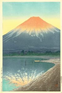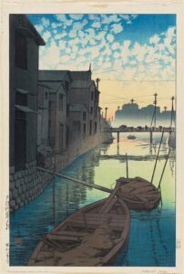 巴水は浮世絵の伝統を継ぐ下絵/彫リ/摺りの分業制の「新版画」が一時期批判を浴びたとき、広重の模倣のように言われたそうだけれど、むしろ、今回見ていて、江戸と明治の背景の違いのようなものを強く感じるとともに、江戸の浮世絵の風景画とは全く違うものだと思った。